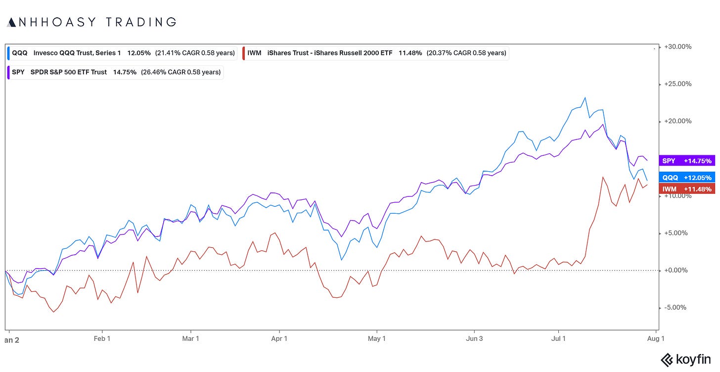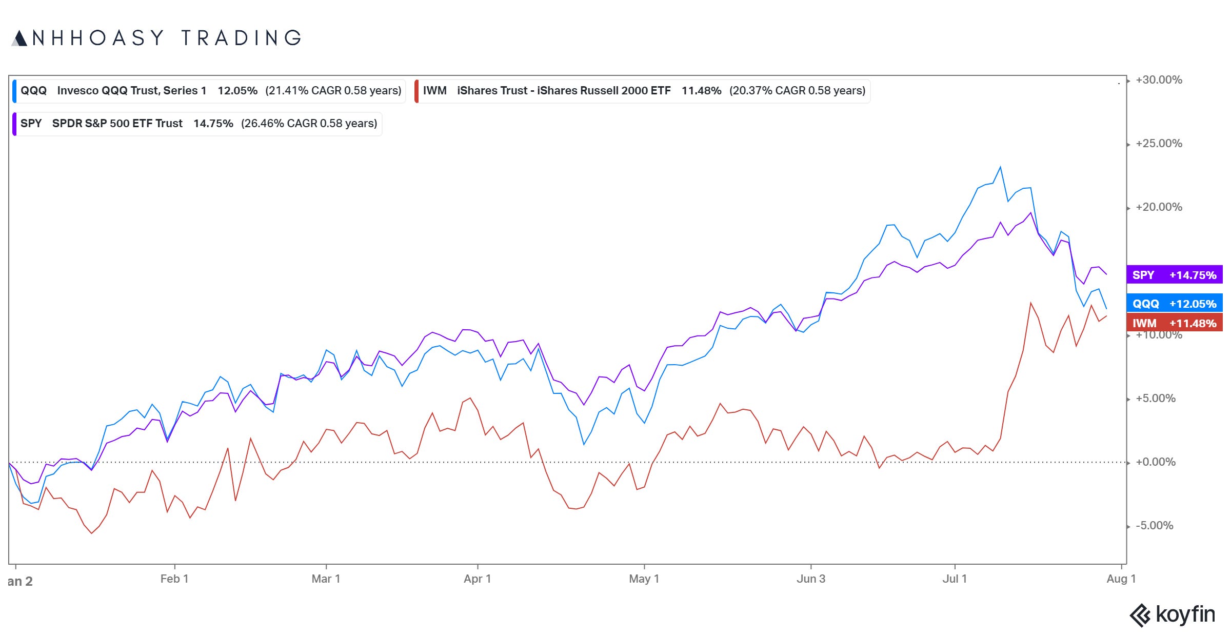 YTD performance của IWM đã gần bắt kịp QQQ và SPY.
